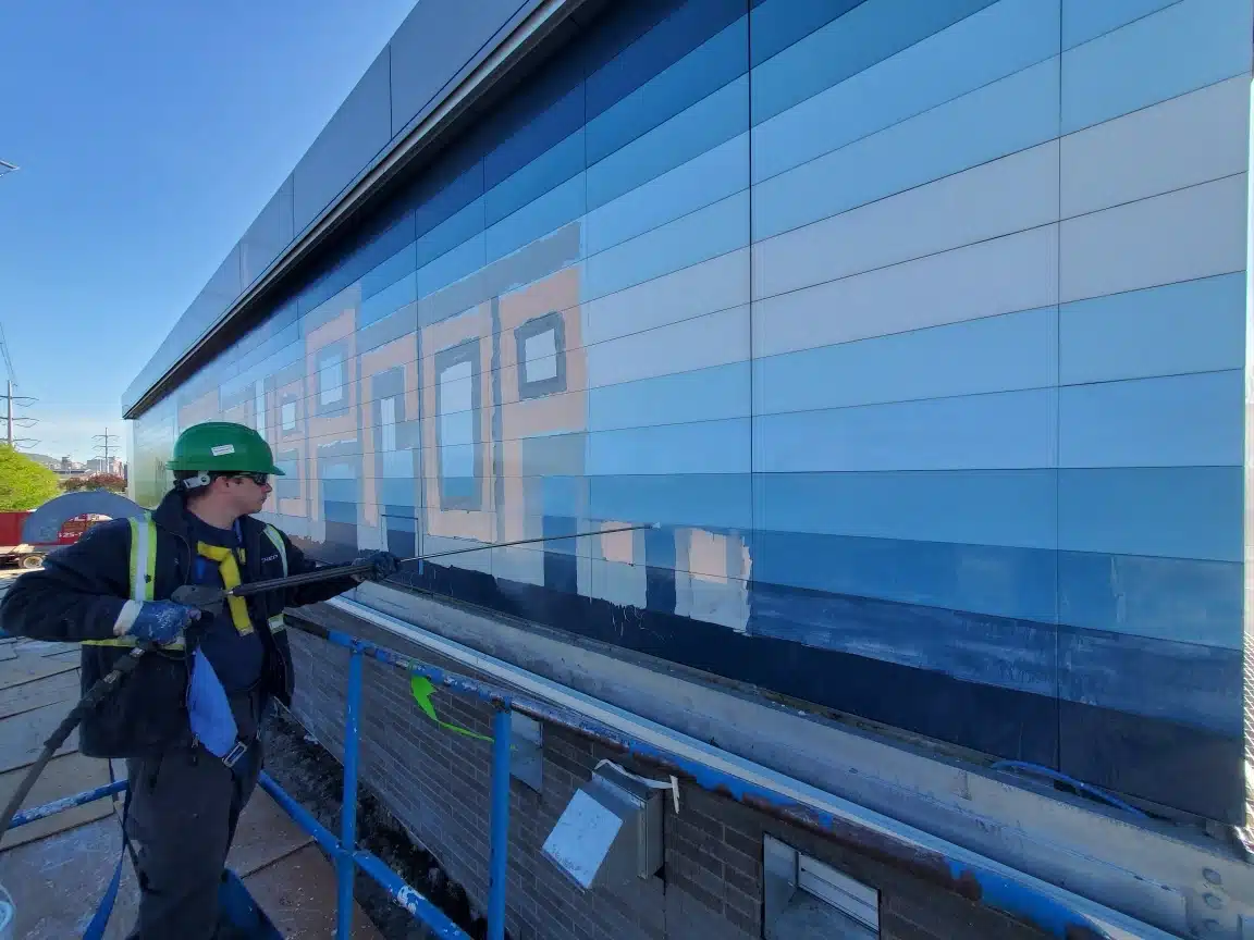 80% of our business requires cleaning up graffiti. Our clientèle for that branch consists of cities, school districts, government ministries, etc., but we also have customers in the housing and private sectors.